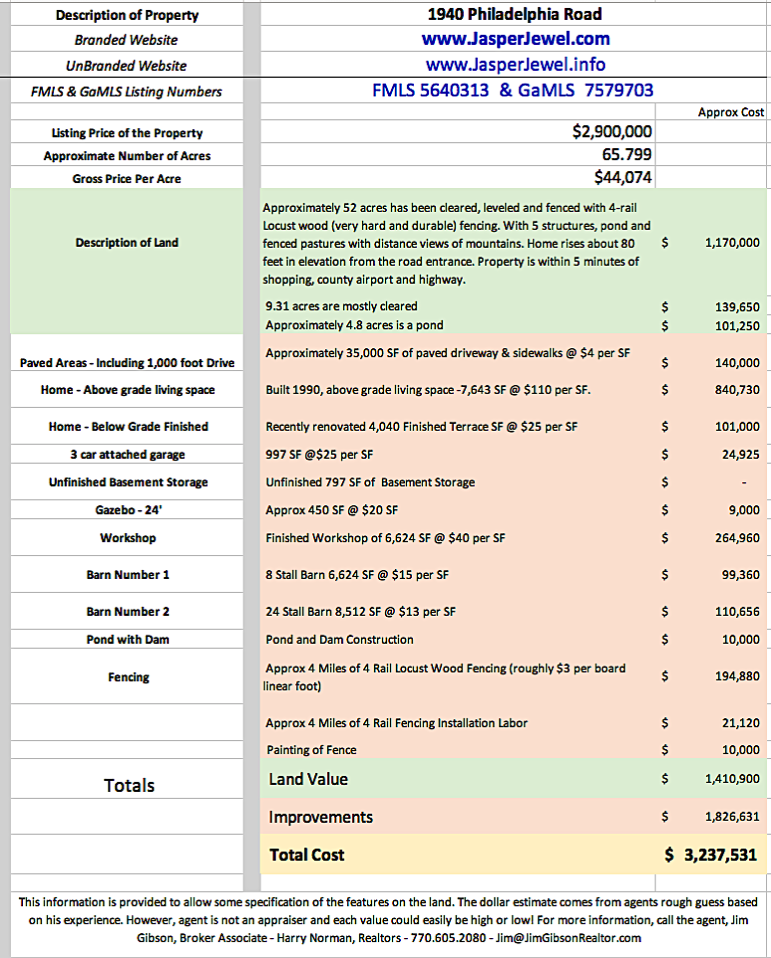 To gain an idea of just how magnificent this property is, this spreadsheet was created to allow the viewer to gain some idea of what all these features would cost.
