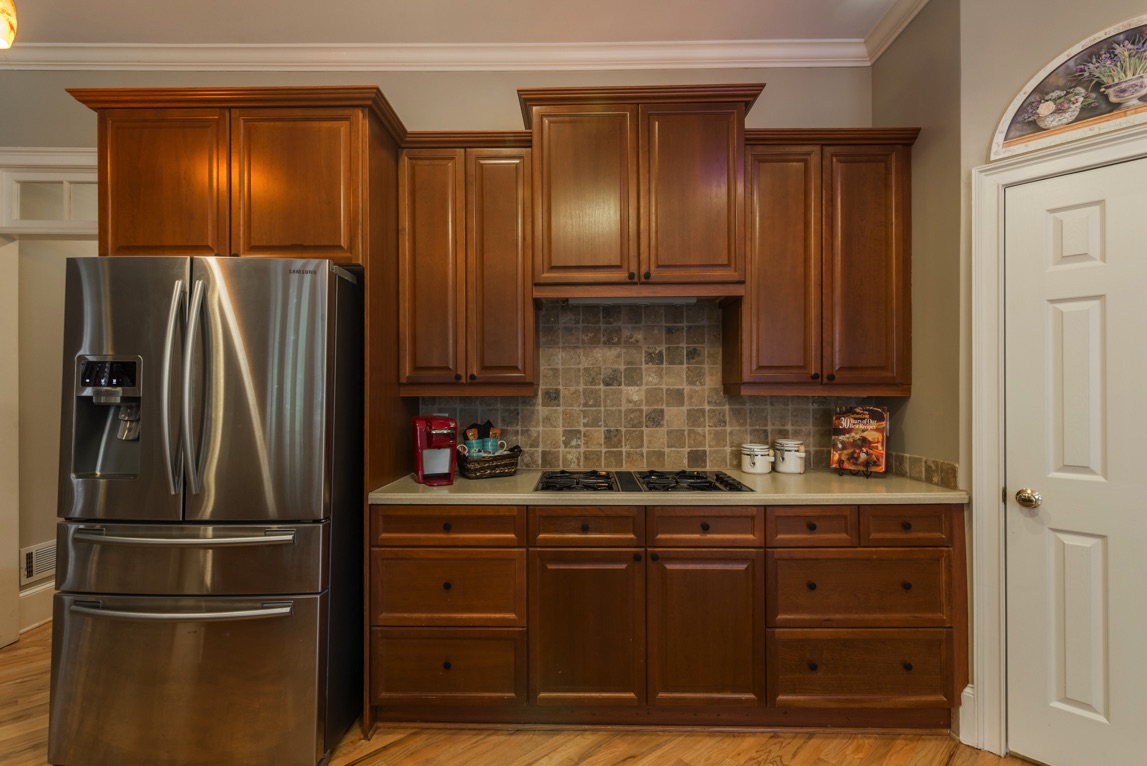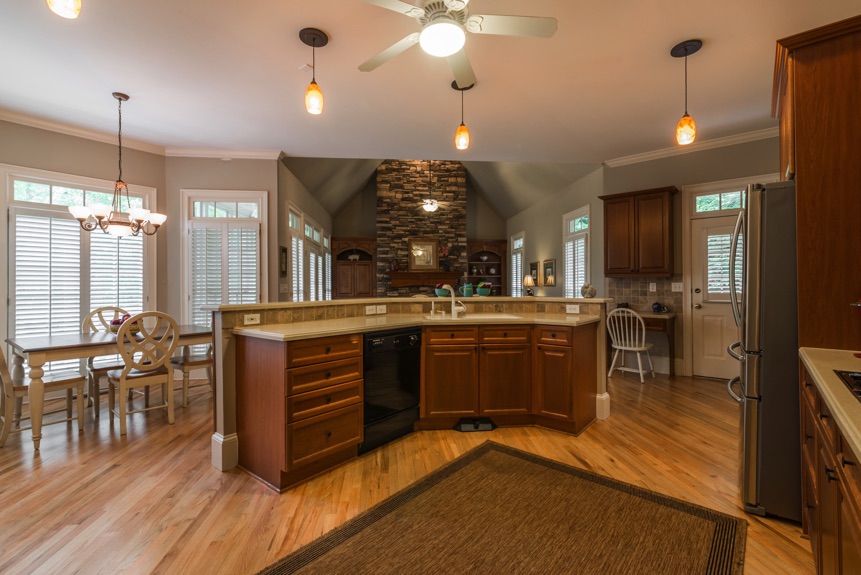 The kitchen area is now the gathering place for friends and family to enjoy the preparation of dinner. This kitchen has easy views to the keeping room. It also features a eat-in area with tranquil views to the heavily wooded back yard.
